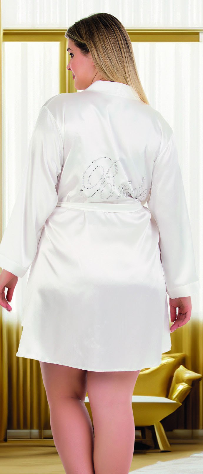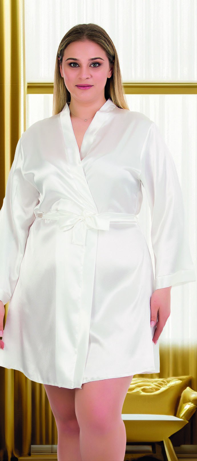 • Beyaz Bride İşlemeli Saten Büyük Beden Sabahlık