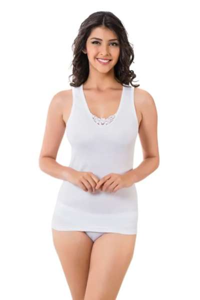 • Beyaz Pamuklu Geniş Askılı Güpürlü Kadın Atlet