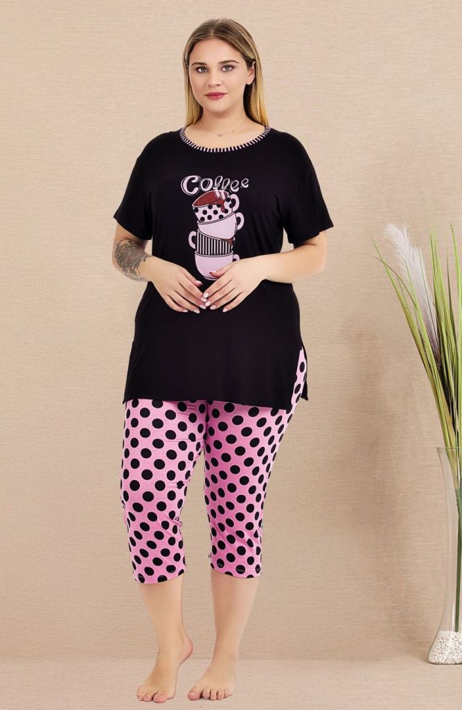 • Büyük Beden Puantiyeli Kısa Kollu Kapri Pijama Takımı