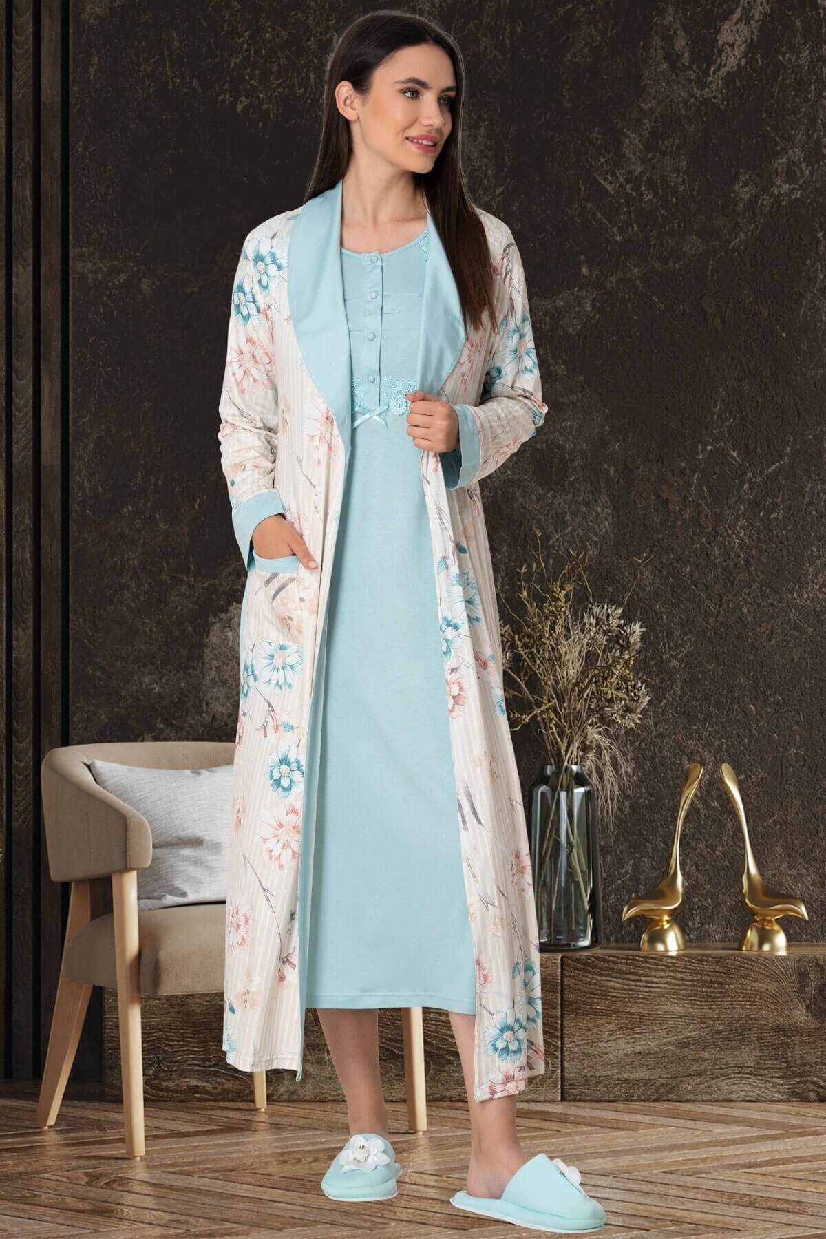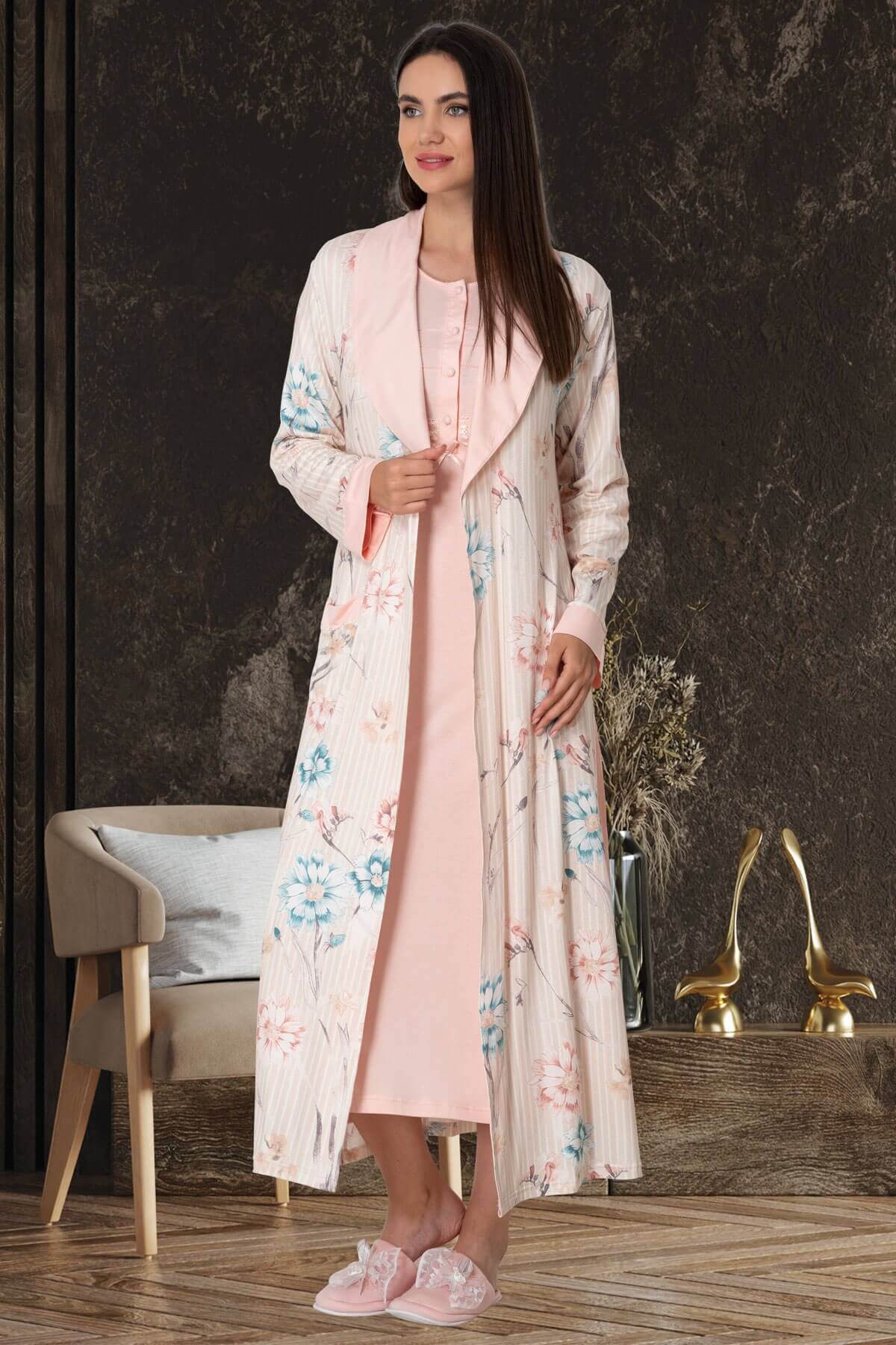 Çiçek Desen Sabahlıklı Gecelik Takım