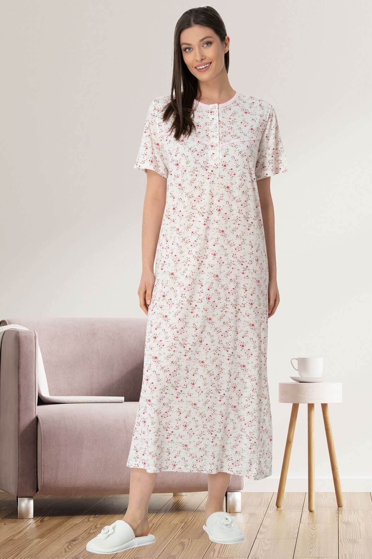 • Çiçekli Büyük Beden Kısa Kollu Gecelik