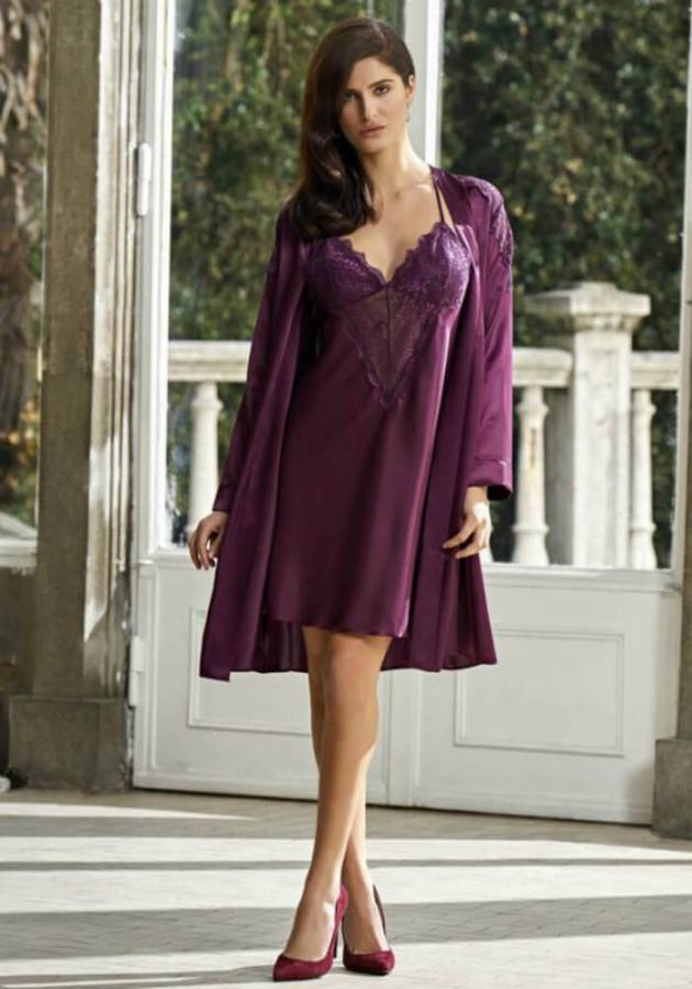 Dantelli Saten Gecelik ve Sabahlık Takım