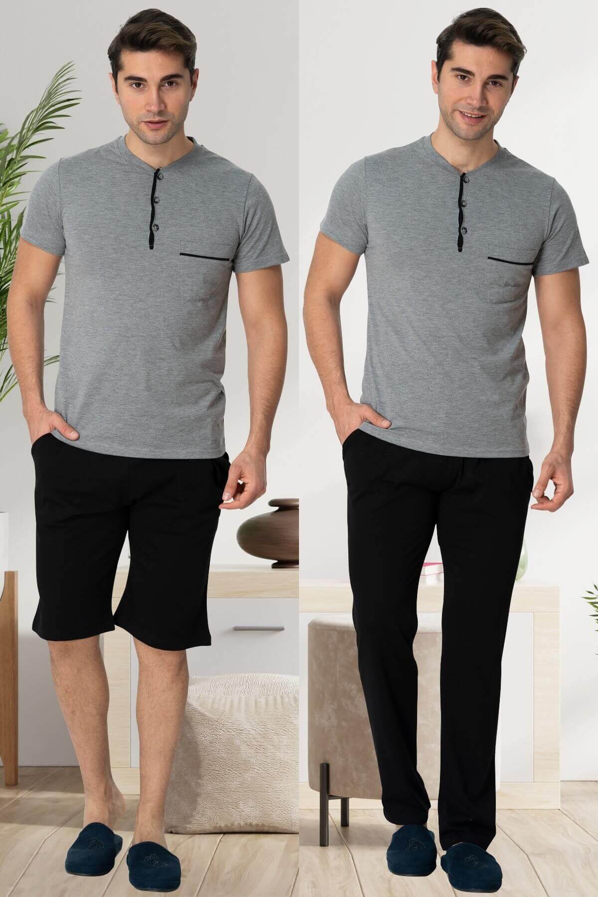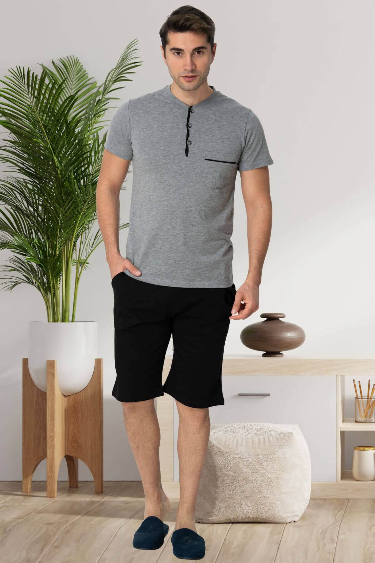 Gri Kısa Kollu Erkek Pijama Şort 3lü Takımı