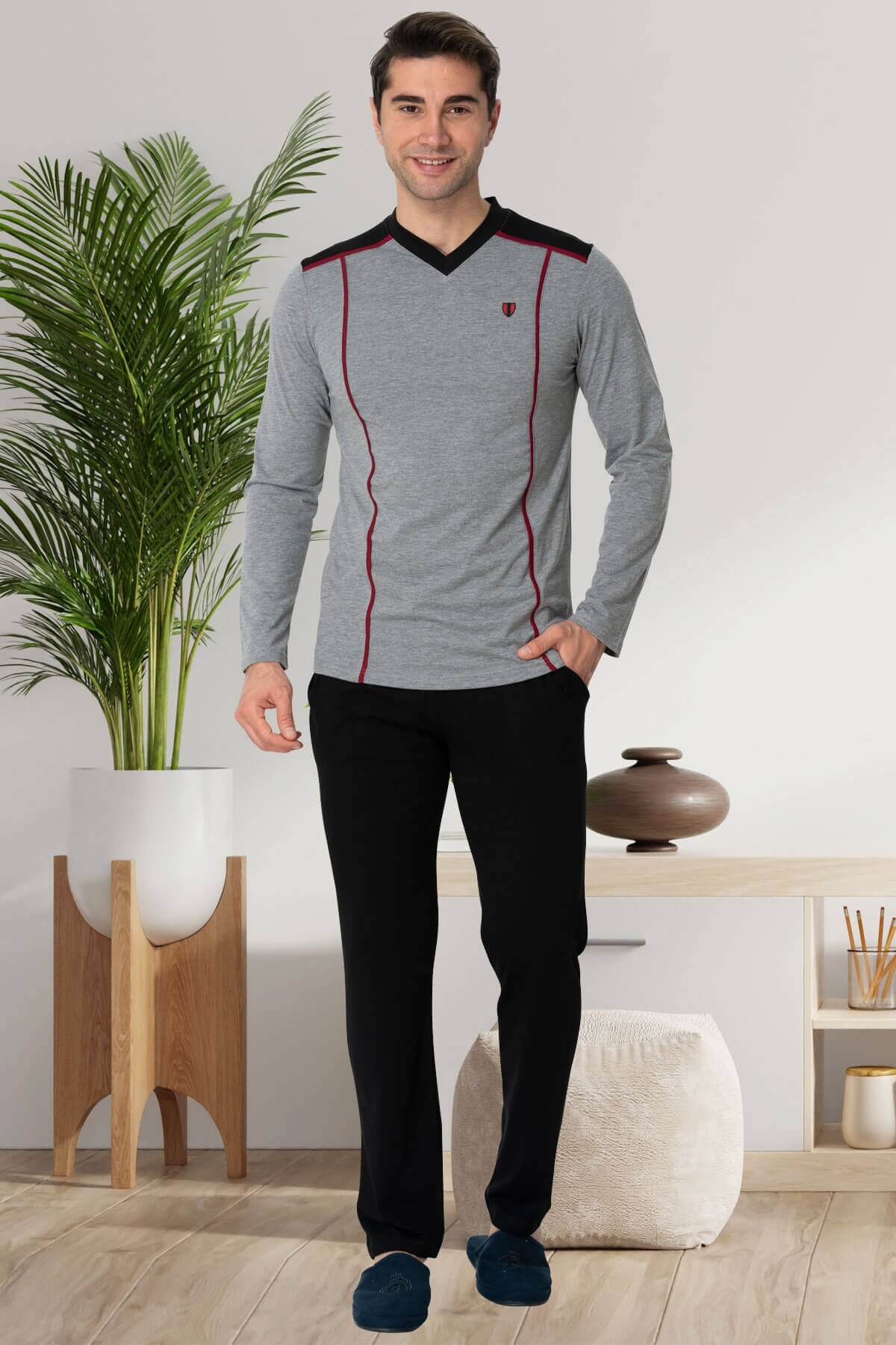 • Gri Uzun Kollu Erkek Pijama Takımı