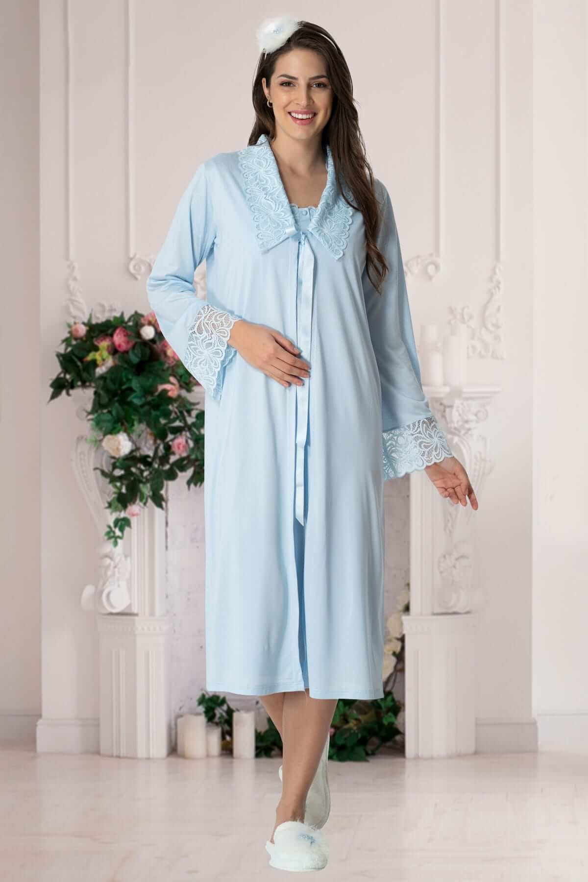 Sabahlıklı şık hamile lohusa gecelik üst kısmında düğme mevcut olduğundan emzirme esnasında bebeğinize ve size büyük kolaylık sağlamaktadır.