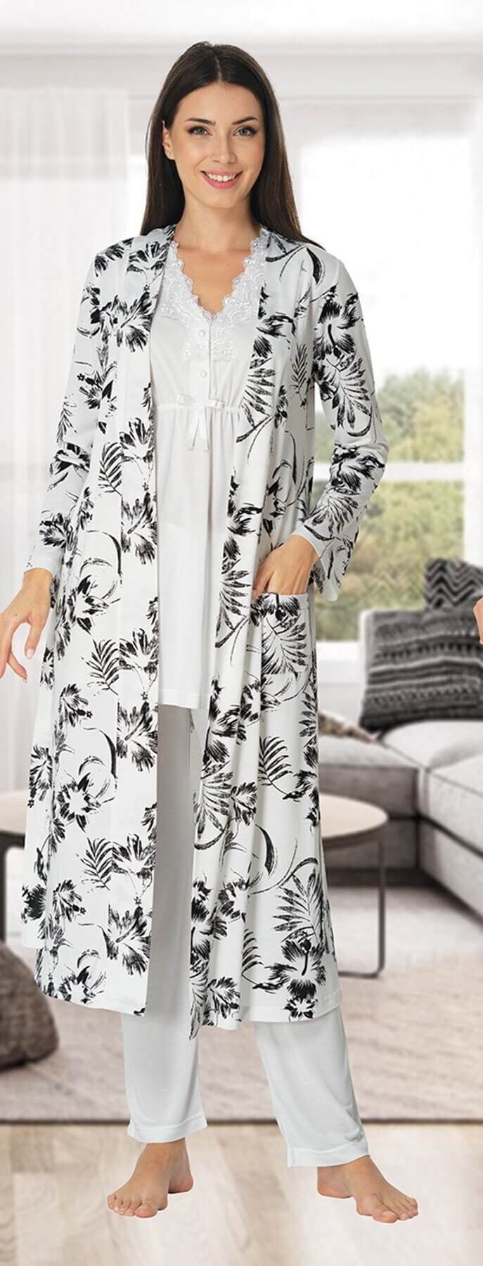 • Hamile Lohusa Sabahlıklı Pijama Takımı 3lü Set