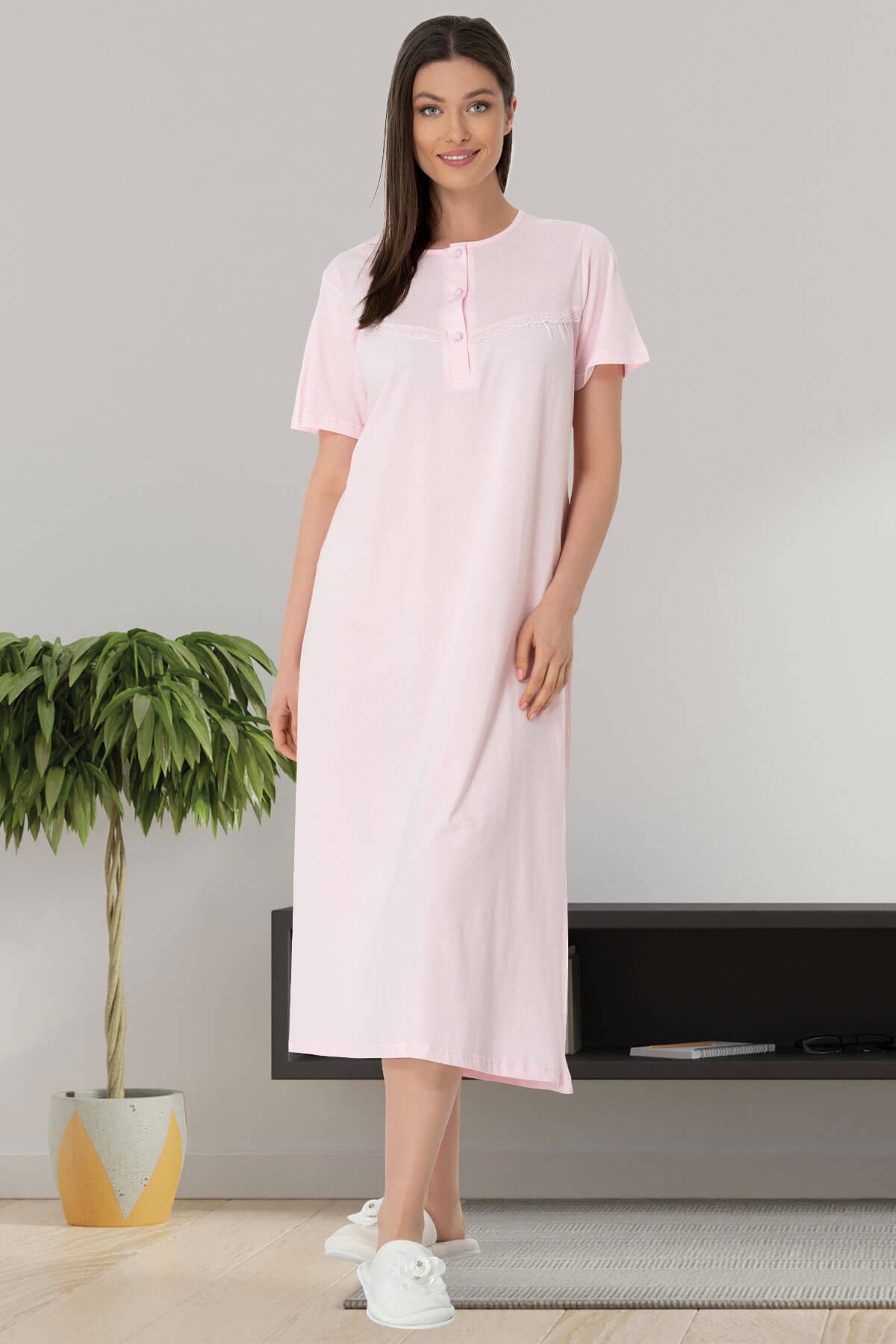 • Kısa Kollu Pembe Büyük Beden Gecelik