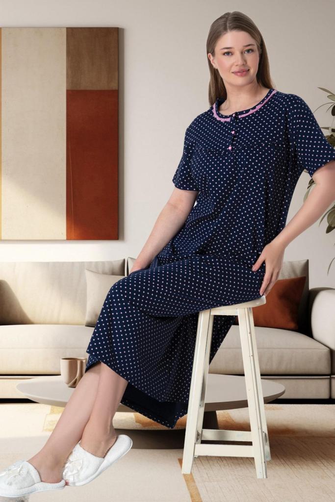 • Lacivert %100 Pamuk Büyük Beden Kadın Gecelik