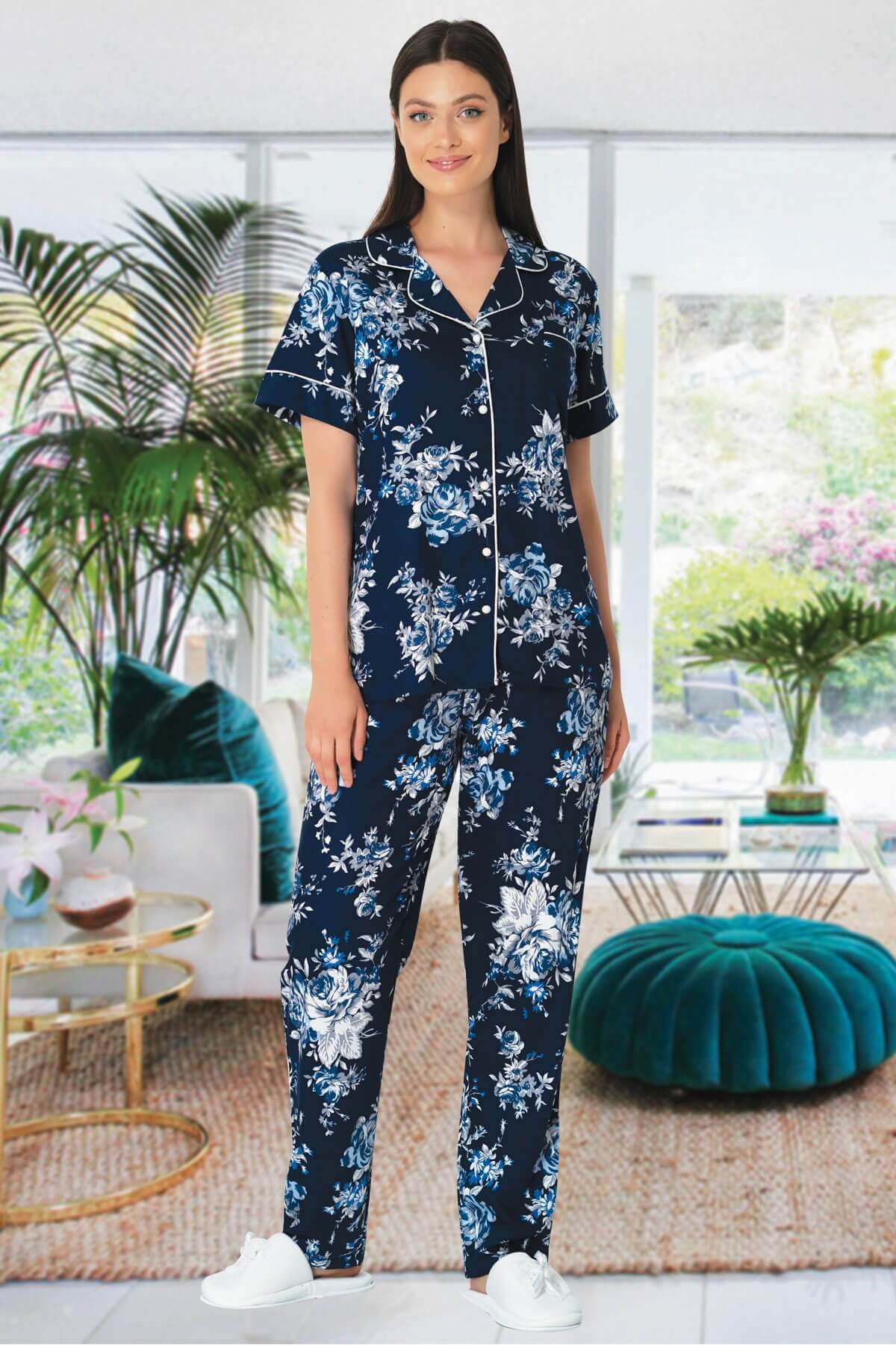 Lacivert Kadın Kısa Kollu Pijama Takımı