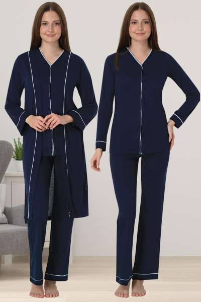 Lacivert Sabahlıklı Hamile Lohusa Pijama Takımı