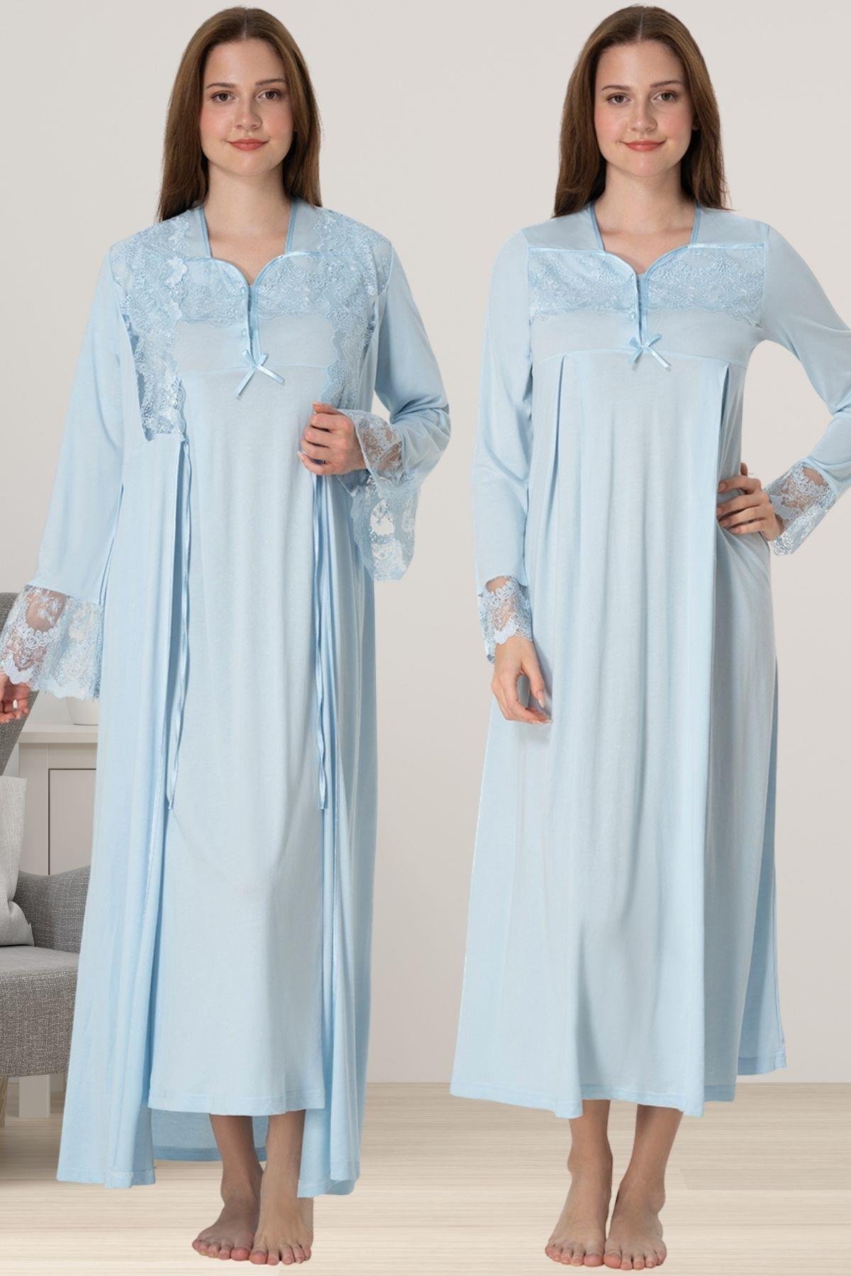 • Mavi Hamile Lohusa Sabahlıklı Gecelik Takımı
