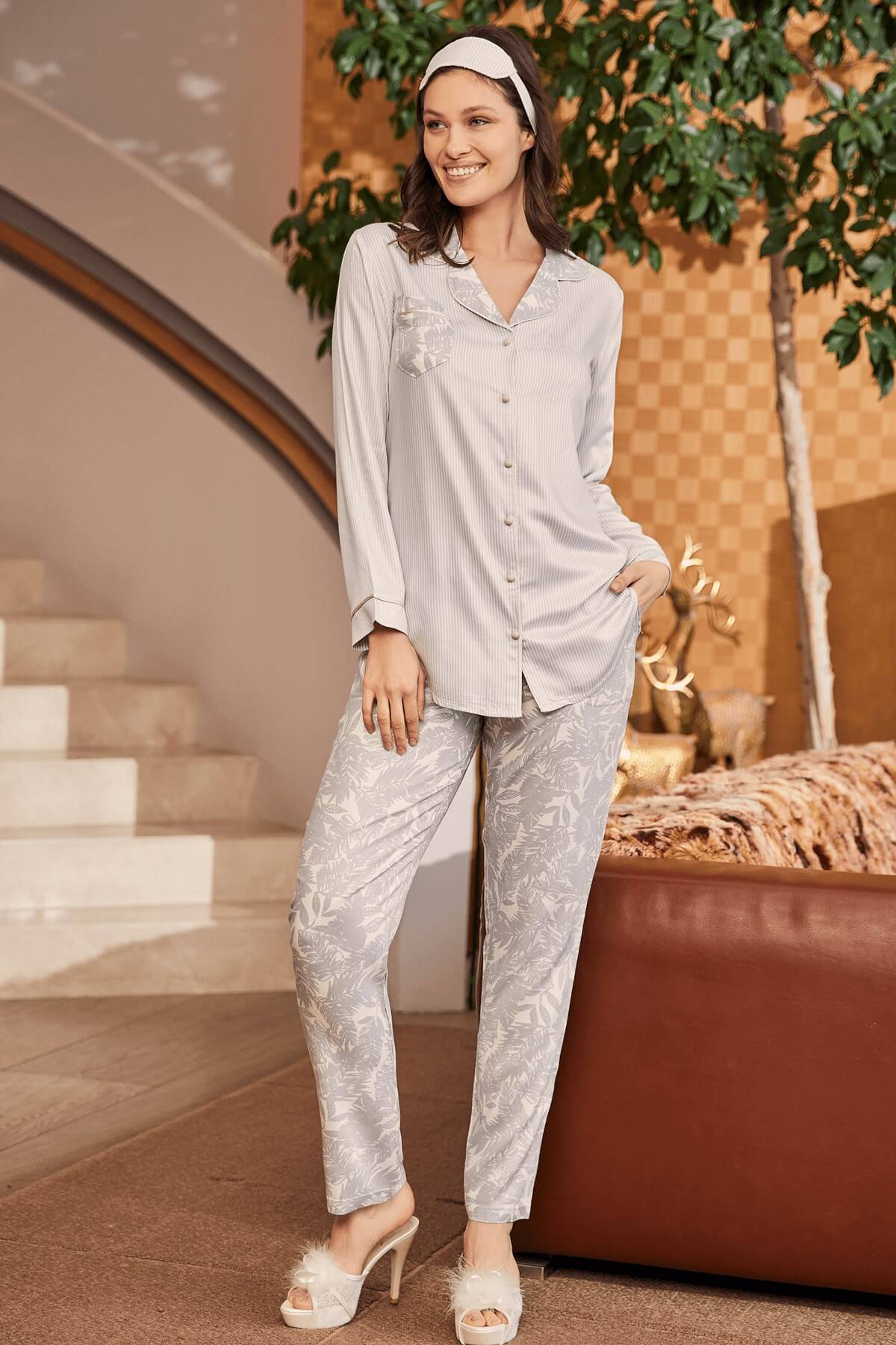 • Önden Düğmeli Poplin Kadın Pijama Takım