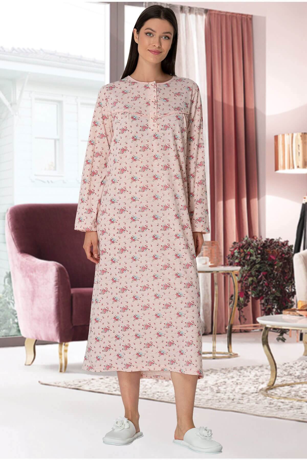 • Pembe Çiçekli Büyük Beden Battal Kadın Gecelik