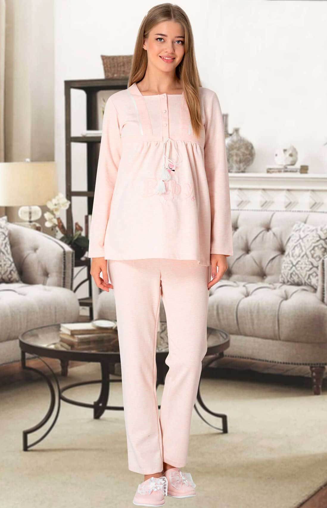 Pembe Sabahlıklı Hamile Lohusa Pijama Takımı