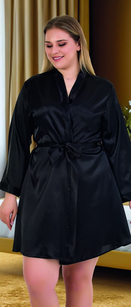 Siyah Bride Saten Büyük Beden Sabahlık