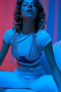 • Siyah Deri Zincirli Fantezi Harness Büstiyer Sütyen