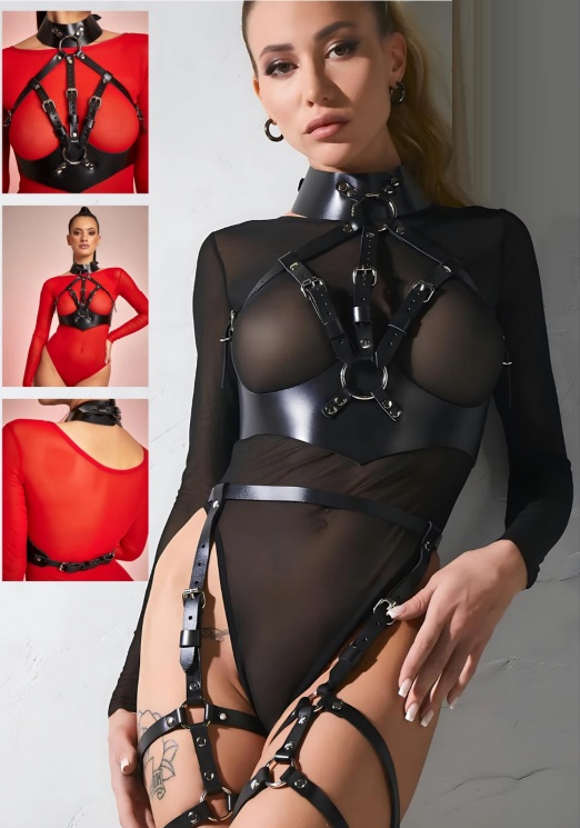 • Siyah Fantezi Deri Sütyenli Jartiyer Takım
