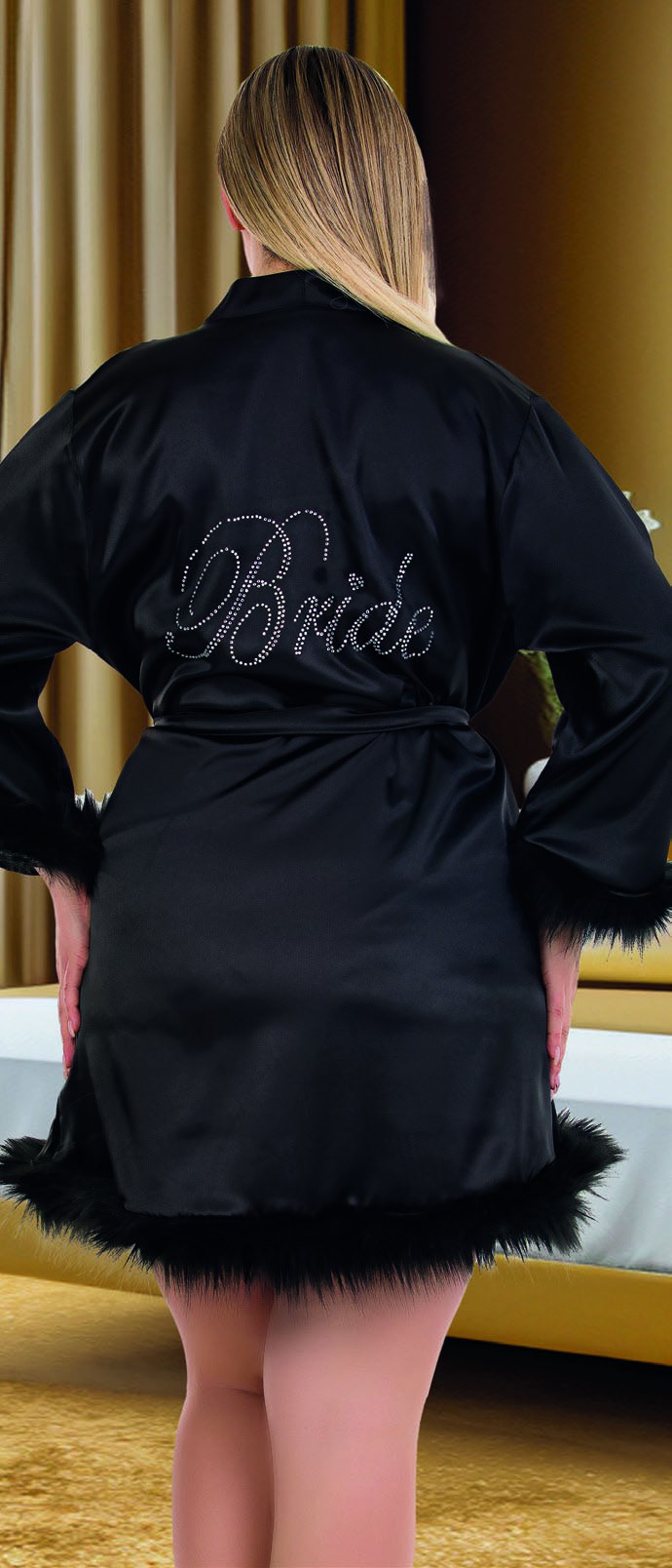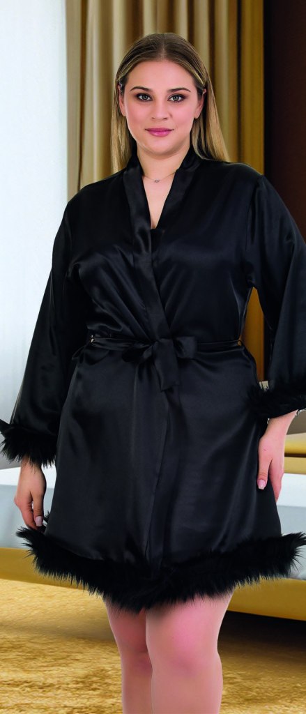 • Siyah Tüylü Bride Büyük Beden Sabahlık