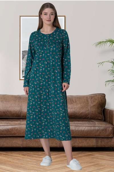 Yeşil %100 Pamuk Büyük Beden Kadın Gecelik