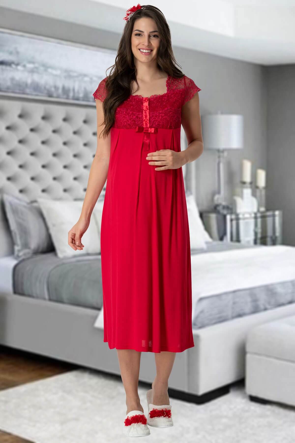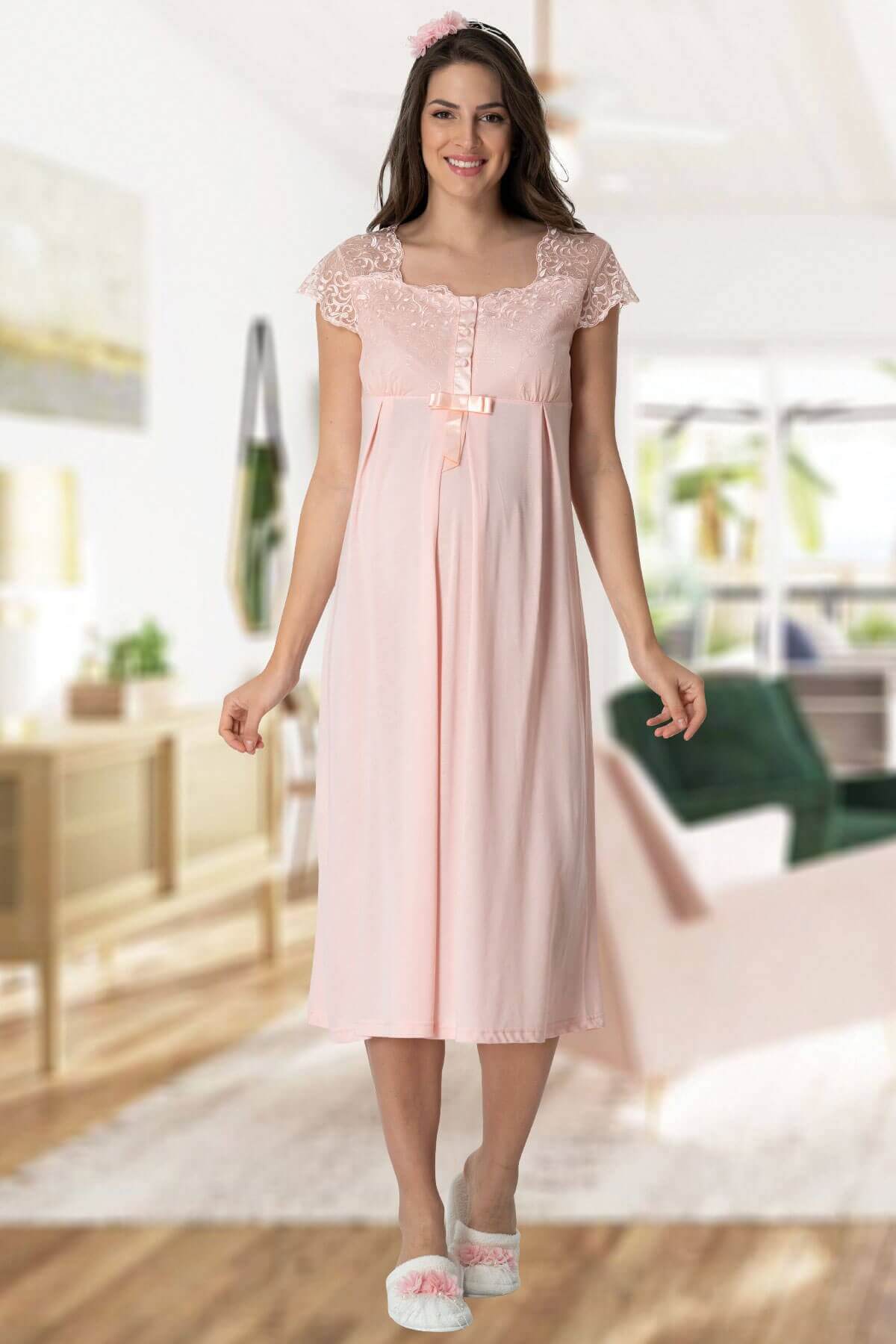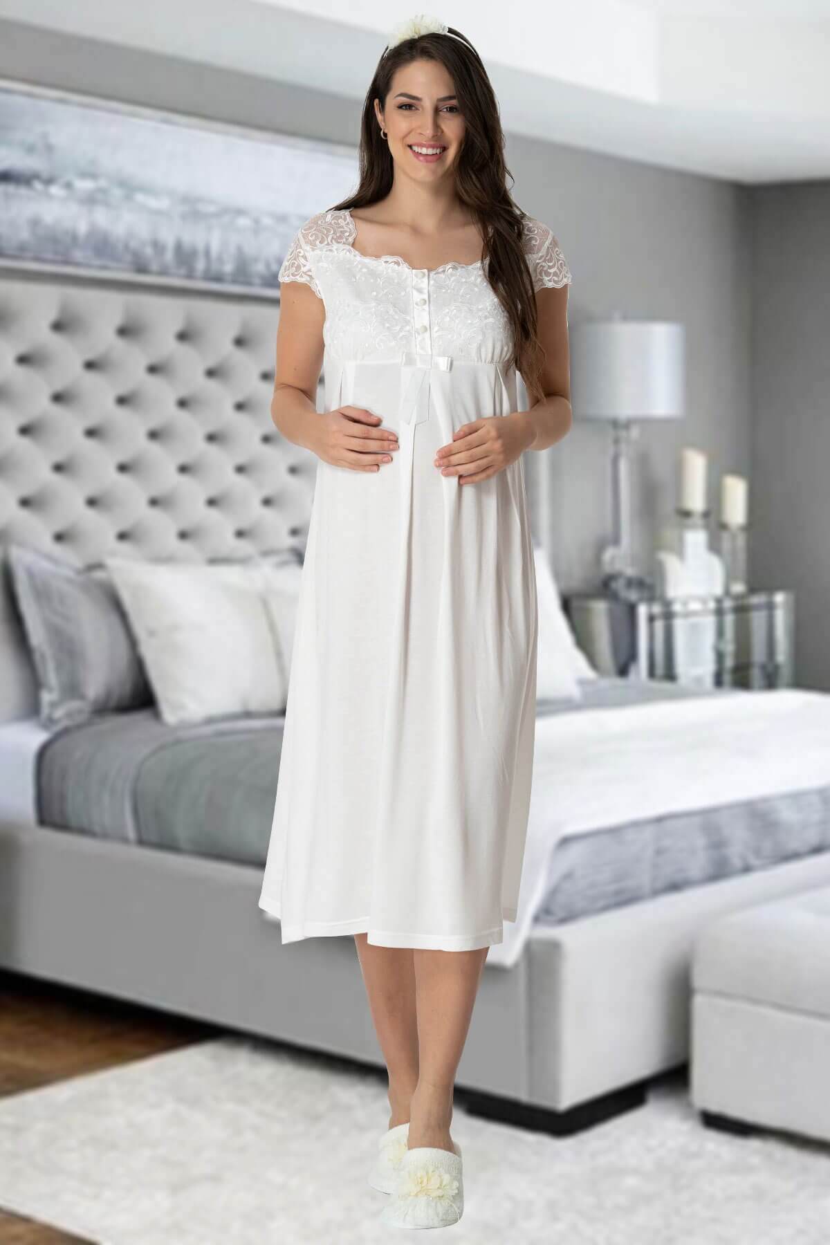 Zarif Dantelli Kısa Kollu Hamile Lohusa Gecelik